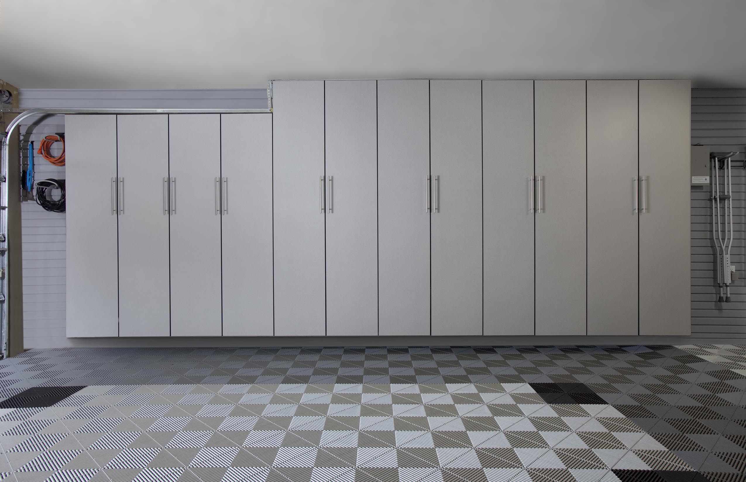 Our superior grade cabinet material is not only strong, but it will also last you a lifetime and look beautiful. Wall mounted construction hanging will allow space between the floor and your precious garage cabinets to prevent water damage and make your cleaning under it easy. We offer sliding cabinet doors to allow you more space. This in turn will allow you to park your expensive car close to your cabinet without worrying about any damage. Our shelving solutions that are 1” thick are above industry standards and can carry over 125 pounds. At Elegant Closets all our garage cabinets are installed with ¼” backing, this guarantees that your custom garage cabinets will be one strong and cohesive system that will last for many years to come and allow you to put a heavy load on it.